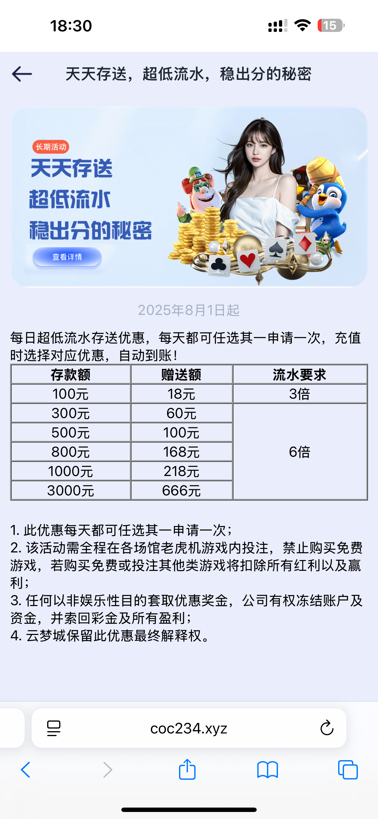 云梦城活动;小额存送可以买免费。